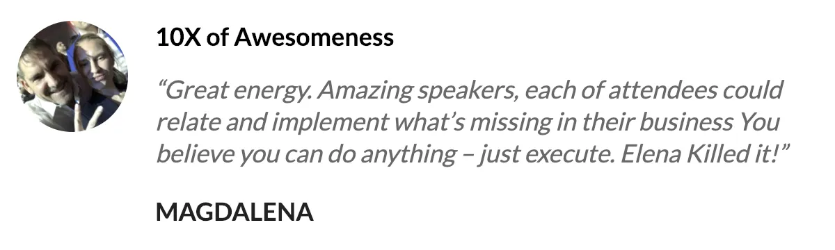 ALL of the 10X Growth Conference expert speakers are highly vetted and hand-selected by me personally. They are required to have an extensive background in both the education AND implementation of the strategies that they will present.